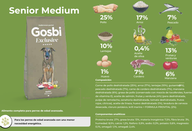 Alimento Perro GOSBI Exclusive Senior Medium 12 Kg